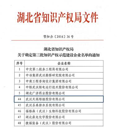 天高股份获评湖北省第三批知识产权示范建设企业