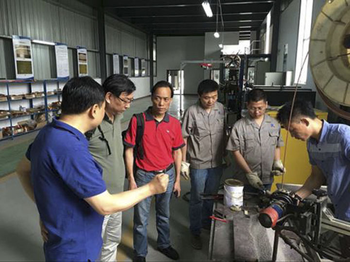 6月15日上午,上海外高桥造船有限公司副总经理陈刚博士、科技管理部部长张学辉等一行专家代表团到武汉理工大学、天高股份及子公司—理工船舶考察交流。现场观看高效埋弧焊接工艺演示期间,考察团分组成员参观天高股份技术中心,现场观看高效埋弧焊接工艺演示,详细了解高效埋弧焊接材料的研制、供货、生产技术条件。在了解到双丝双面单道埋弧焊接工艺及材料填补国内空白时,焊接专家喻军、唐连元对我司创新产品给予