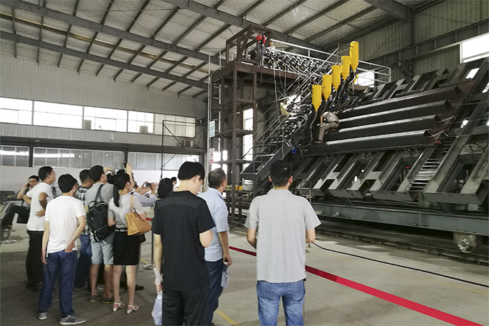 近日,湖北省交通规划设计院二十余名技术骨干在副总工程师张巍、常英和丁望星带领下,来到天高股份考察U肋全熔透焊接新技术。考察团在车间现场观摩了钢箱梁U肋全熔透焊接自动化生产过程,听取了公司技术团队对焊接材料、焊接工艺及接头疲劳性能等方面的专题汇报,了解公司在正交异性钢桥面板焊接技术方面的工作成绩。现场观摩钢箱梁U肋全熔透焊接自动化生产过程通过本次考察,湖北省交通规划设计院对天高股份U肋全熔透焊接新技