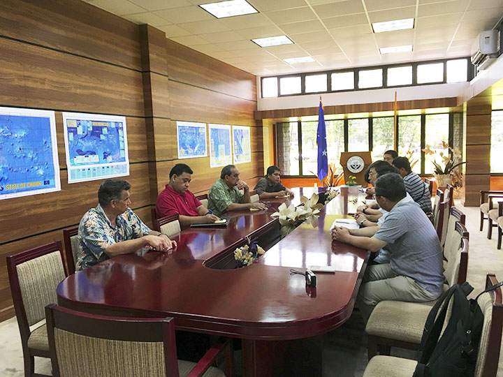 2017年4月6日上午,密联邦总统克里斯琴会见我援密联邦客货两用船考察组一行。我驻密联邦大使李杰、政务参赞李翠英、密联邦总统办公厅主任LeoFalcam、密外交部部长助理JacksonSoram和经商处负责人徐凡等参加会见。 谭祖胜组长代表理工船舶考察组对克里斯琴总统的亲自接见表示衷心感谢,并向总统介绍了在雅浦州和丘克州的考察工作情况。克里斯琴总统详细了解我援密两艘客货两用船的现状、存在问题及成